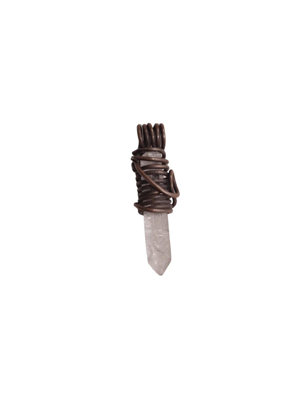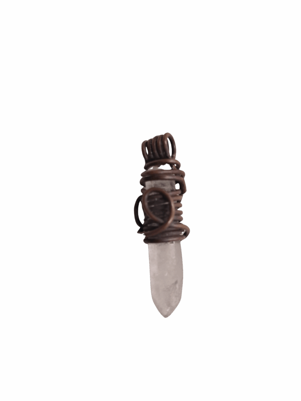Talisman purificateur en cristal de roche monté sur cuivre, pour amplifier l’énergie, clarifier l’esprit et harmoniser les intentions.