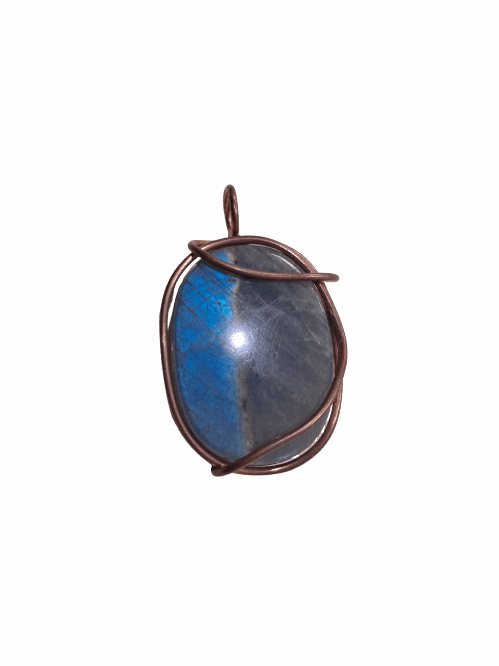 Talisman protecteur en Labradorite monté sur cuivre, idéal pour renforcer l’intuition et se protéger des énergies négatives.
