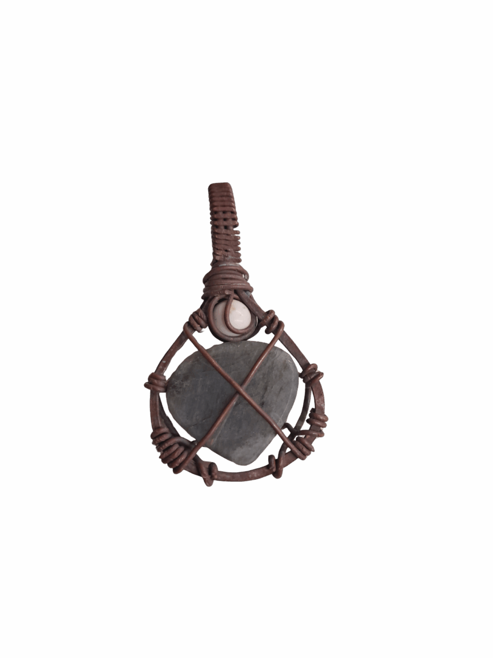 Talisman protecteur en Labradorite monté sur cuivre, pour se préserver des énergies négatives et renforcer l’intuition. Création artisanale et énergétique.