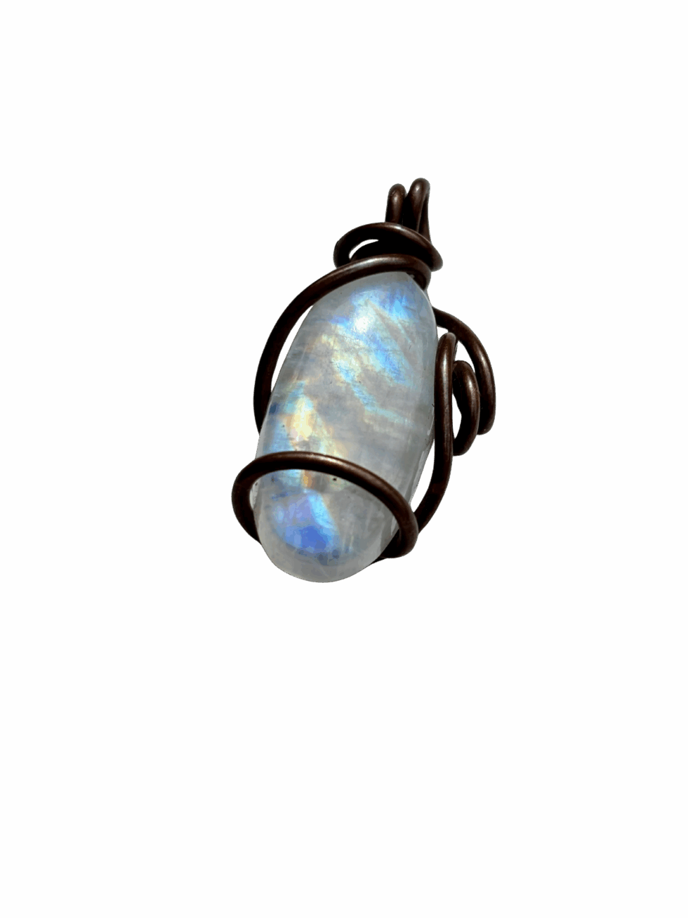Talisman féminin en Pierre de Lune monté sur cuivre, pour éveiller l’intuition, équilibrer les émotions et harmoniser les énergies lunaires.